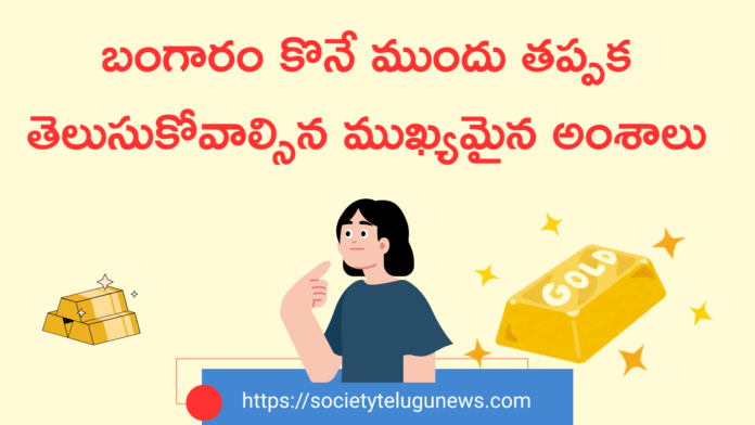 బంగారం భారతీయుల జీవితంలో ఆభరణంగా మాత్రమే కాకుండా, ఒక భద్రమైన పెట్టుబడిగా కూడా కీలక పాత్ర పోషిస్తుంది. పెళ్లిళ్లు, పండుగలు, పెట్టుబడుల అవసరాల కోసం బంగారం కొనుగోలు చేసే ముందు కొన్ని ముఖ్యమైన విషయాలు తెలుసుకోవడం చాలా అవసరం. అవి తెలియకపోతే నష్టం వాటిల్లే అవకాశముంది.